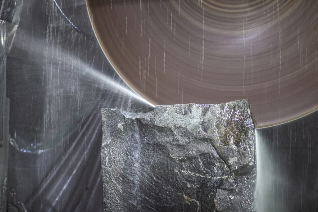 Точная распиловка на алмазных канатных и дисковых станках. Блоки получают финальные размеры, доступные в каталоге.